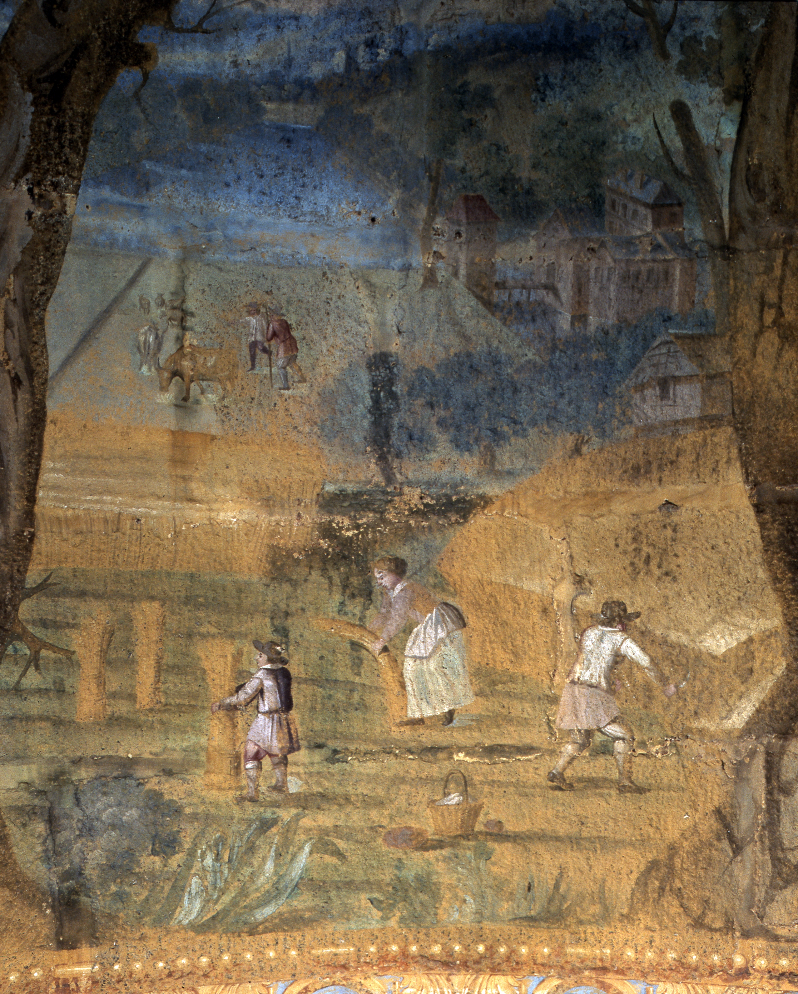 Ensemble de six peintures monumentales (deux dessus-de-porte, quatre peintures murales) : Scènes de la vie de Tobie, paysages, scènes champêtres, Maillé (Plounévez-Lochrist),