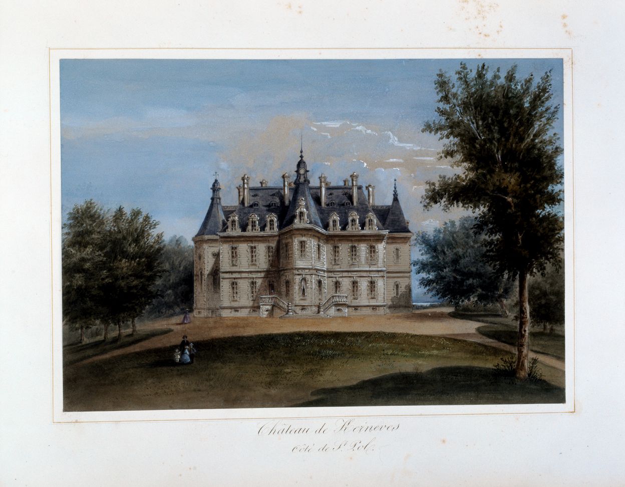 Château de Villeneuve. Elevation est, pastel 2e moitié 19e siècle. Collection privéeImmatriculation