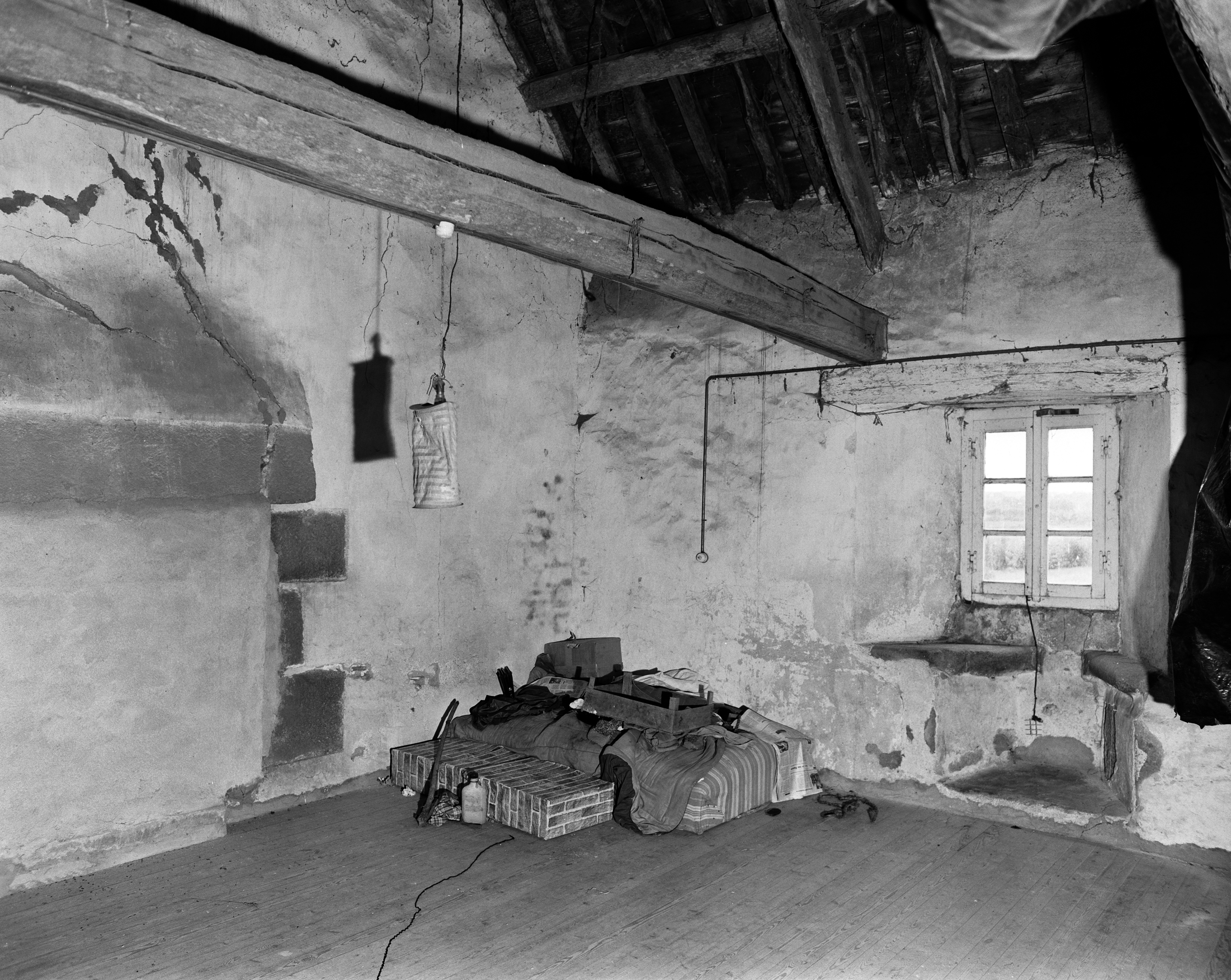Manoir, logis, 1er étage : la salle haute (état en 1986) ; à gauche la cheminée, à droite la fenêtre à coussiègesImmatriculation