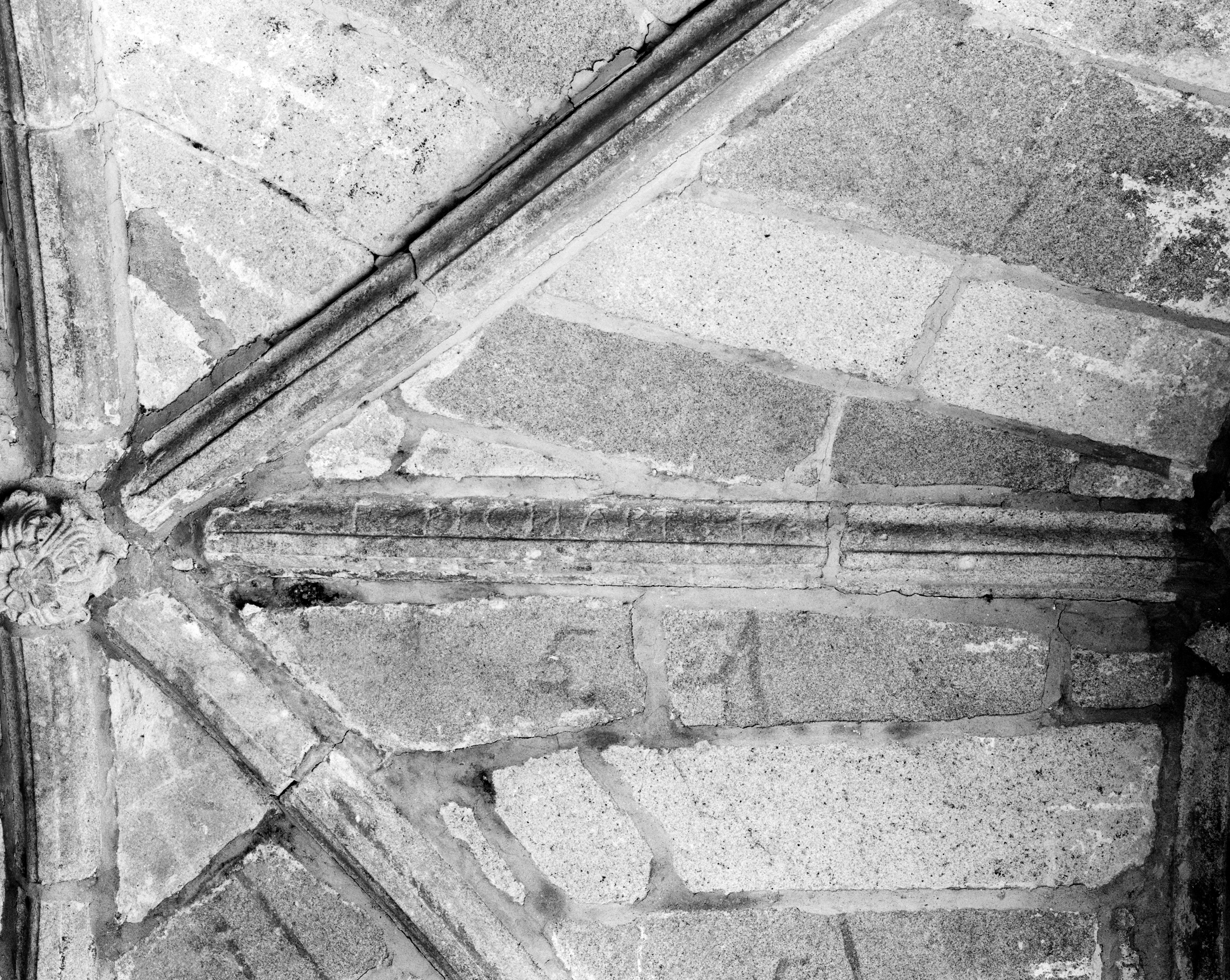 Église, porche sud : inscriptions sur les nervures et clé de voûte (état en 1986)Immatriculation