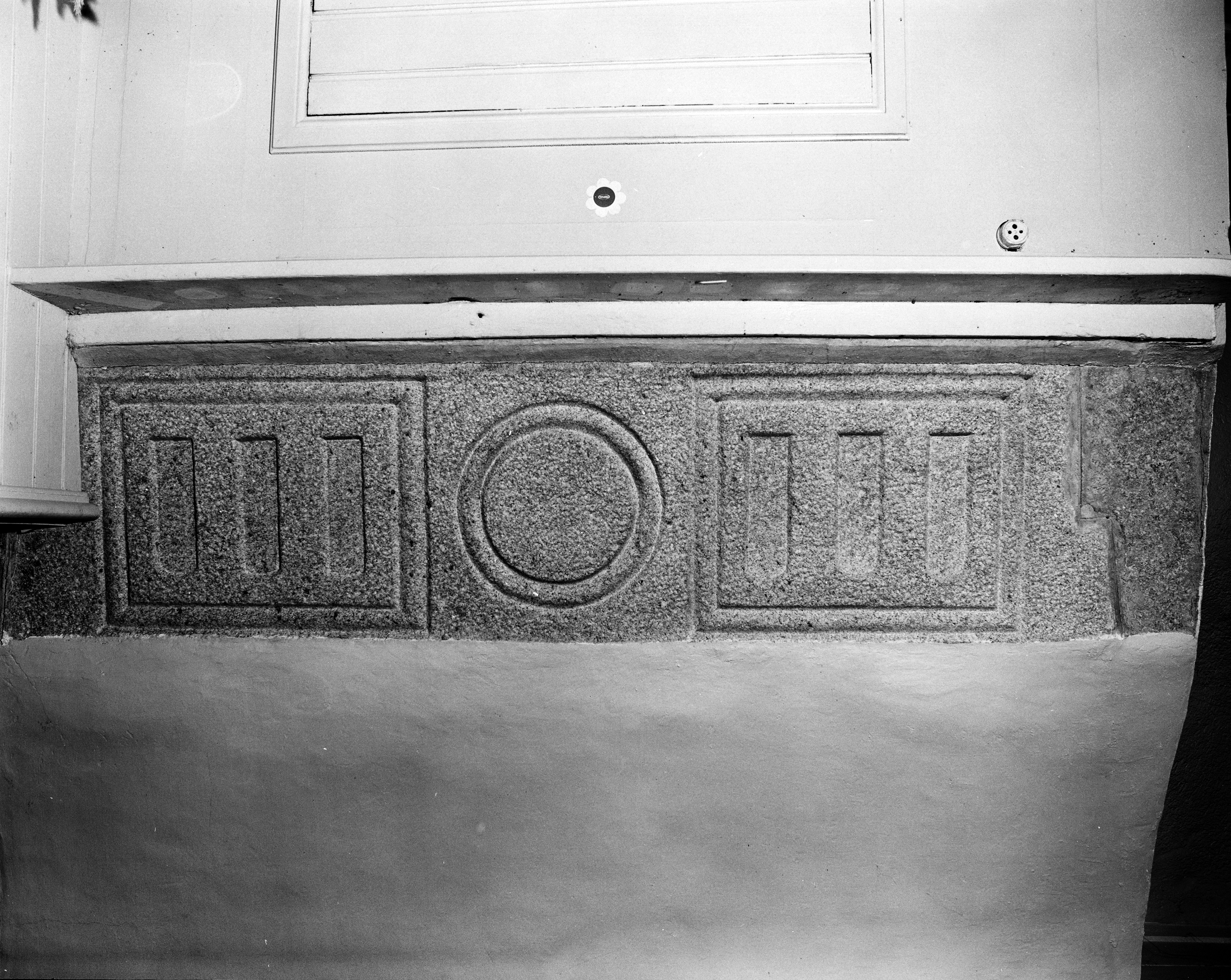 Rez-de-chaussée, détail du linteau de la cheminée estImmatriculation