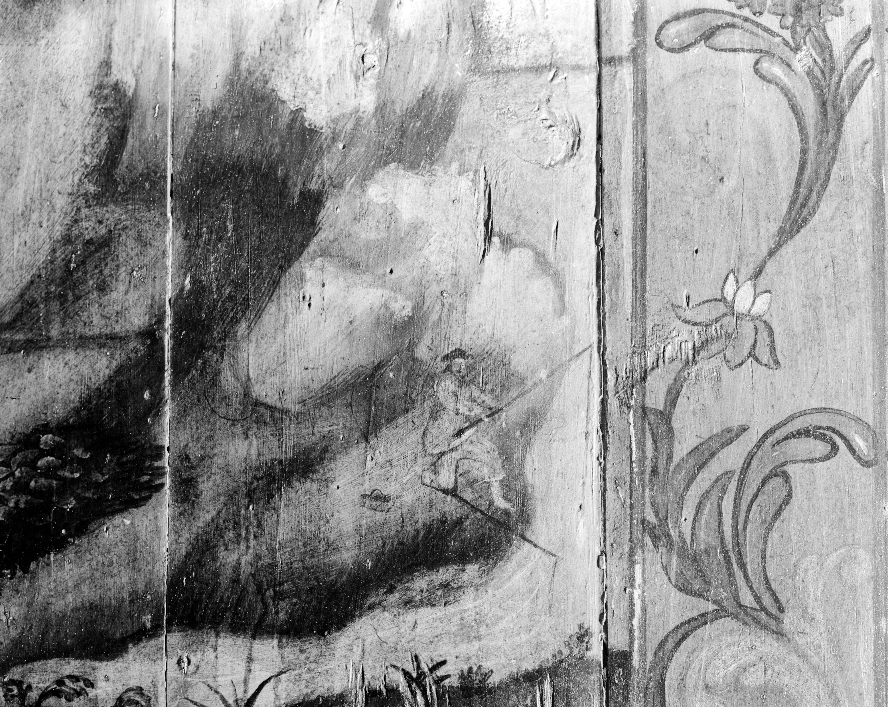 Maison : peintures sur bois, panneau B, détail pêcheurImmatriculation