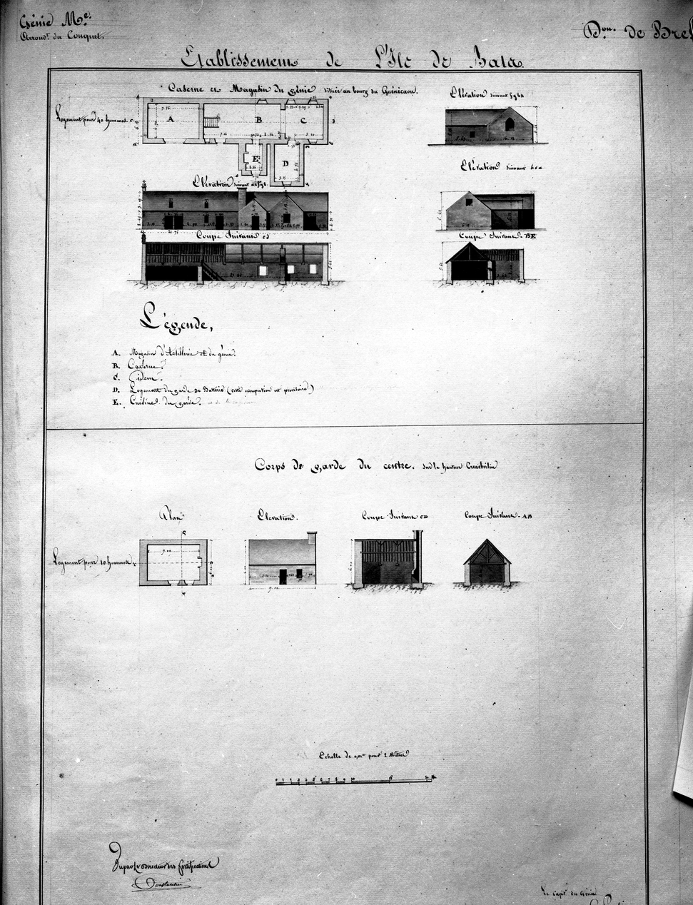 Archives départementales du Finistère : Série J1, Atlas des bâtiments militaires des places de France, tome Morlaix, Quélen, Le Conquet (1831, 1846)