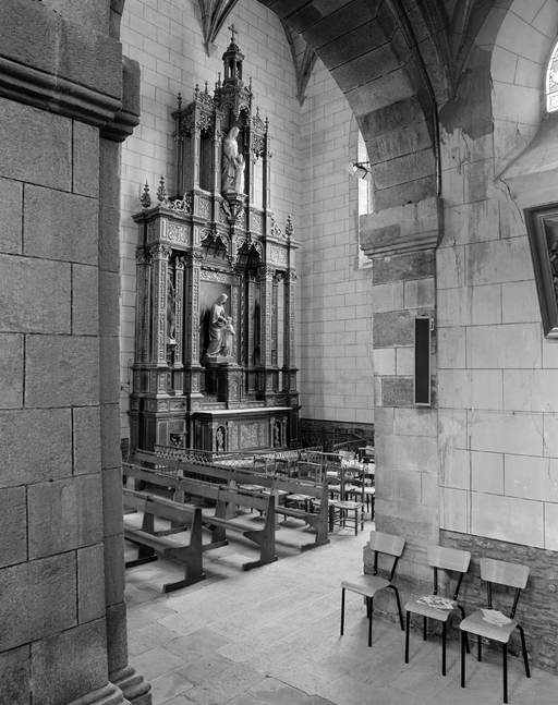 Autel (2), retable (2, autel secondaire, autel tombeau, retable architecturé à niche) : de la Vierge, de sainte Anne, église paroissiale Saint-Pierre, Saint-Paul (Evran),