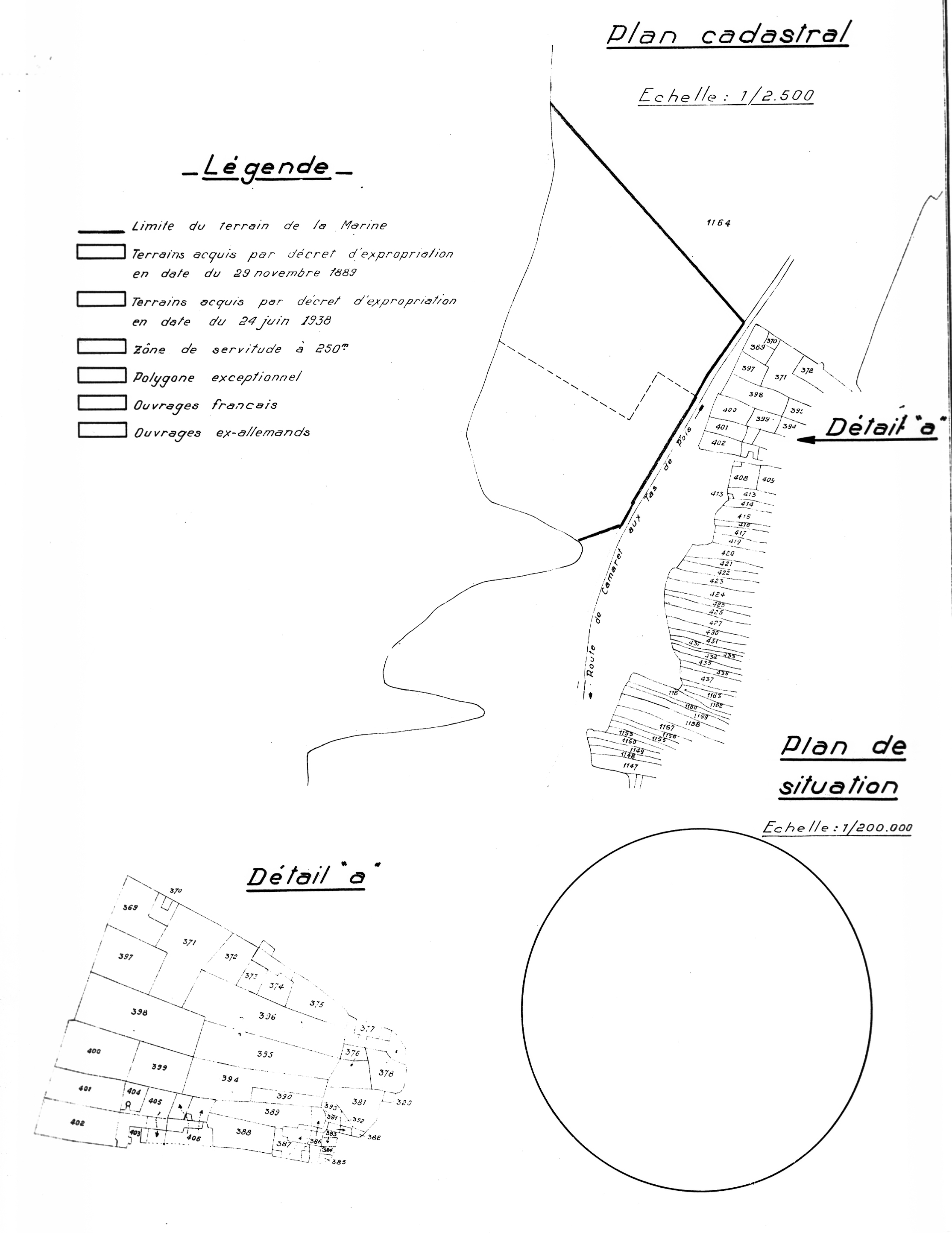 Plan de situation et plan cadastral (terrains acquis par expropriation du 29 novembre 1889 et du 24 juin 1938)Immatriculation