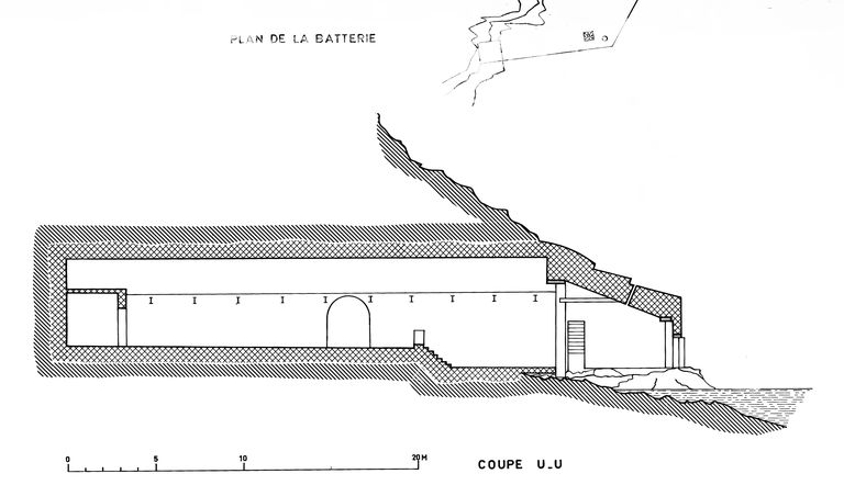 Poste de lancement de torpilles (pour torpille de type G7a modèle 1938 propulsée par air comprimé), Au ras de l'eau, à l'est de la batterie de Beaufort, Pointe de Cornouaille (Roscanvel),