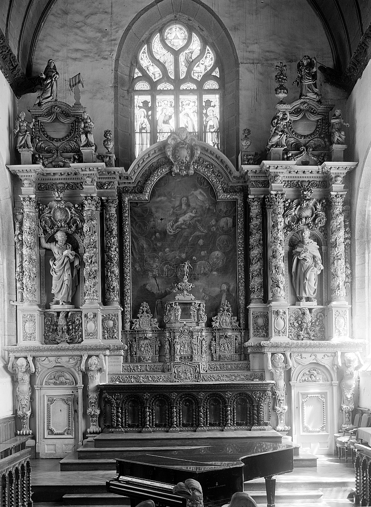 Autel, retable, tabernacle, gradins d'autel (2) (maître-autel, autel tombeau, retable architecturé, tabernacle à ailes), église paroissiale Notre-Dame-de-Croas-Batz (Roscoff),