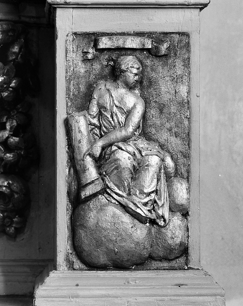 Soubassement du retable, bas-relief de la Force, vue générale.Immatriculation