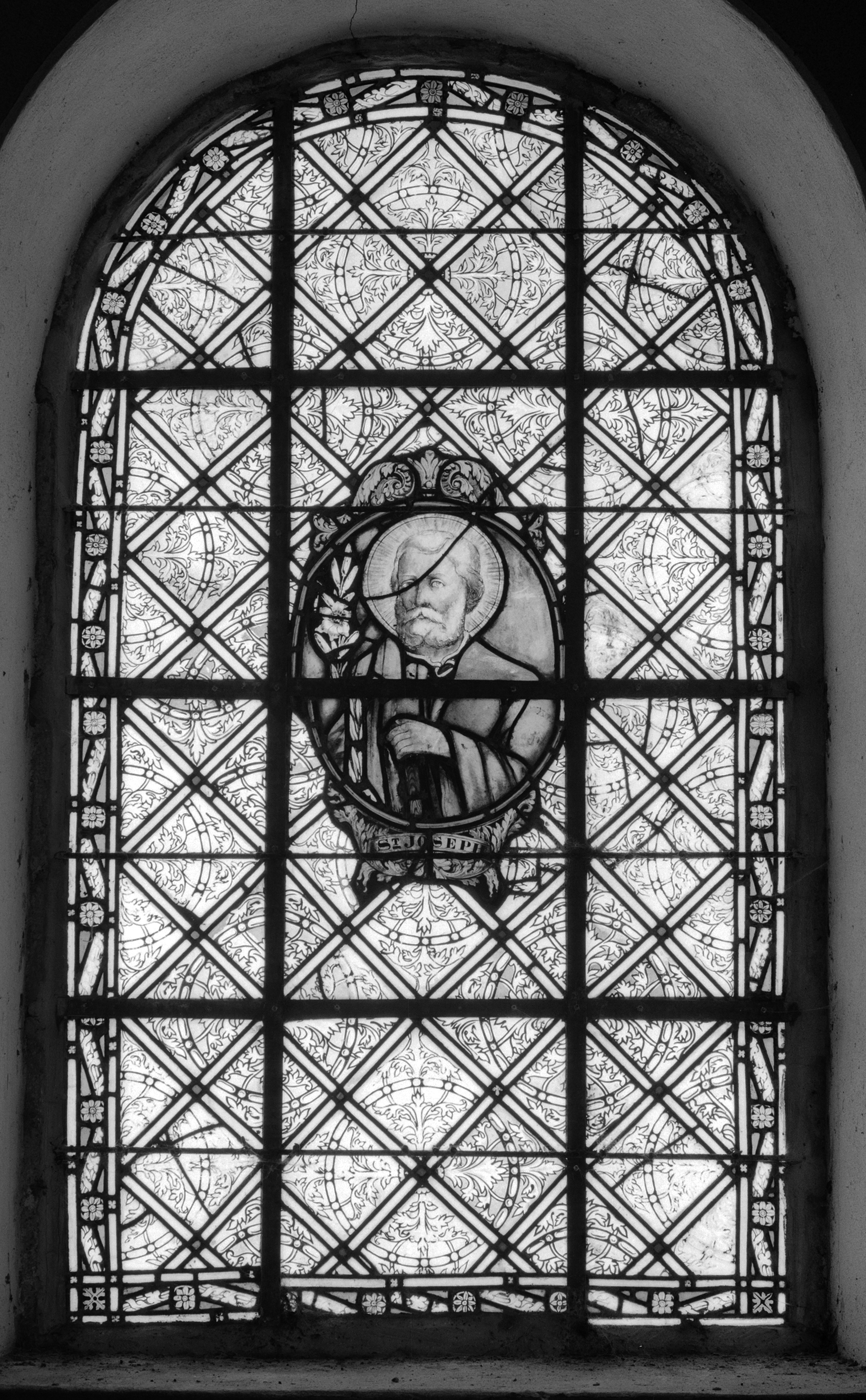 Ensemble de deux verrières à personnages de la baie 5 : Saint Joseph, et de la baie 6 : Vierge à l'Enfant, église paroissiale Saint-Pierre (Plougar),