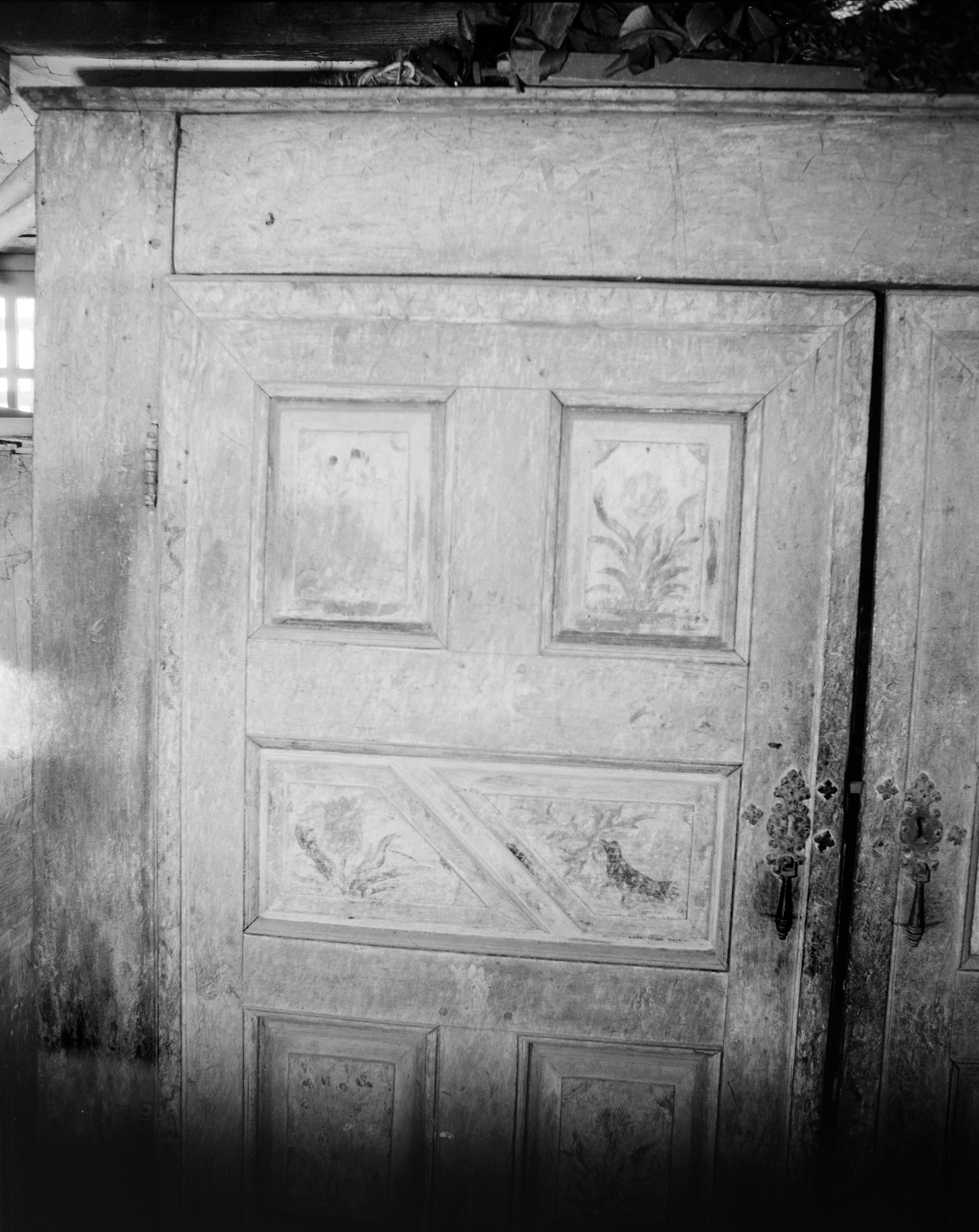 Armoire de sacristie, battant gauche : panneaux supérieurs et médian (état en 1987)Immatriculation
