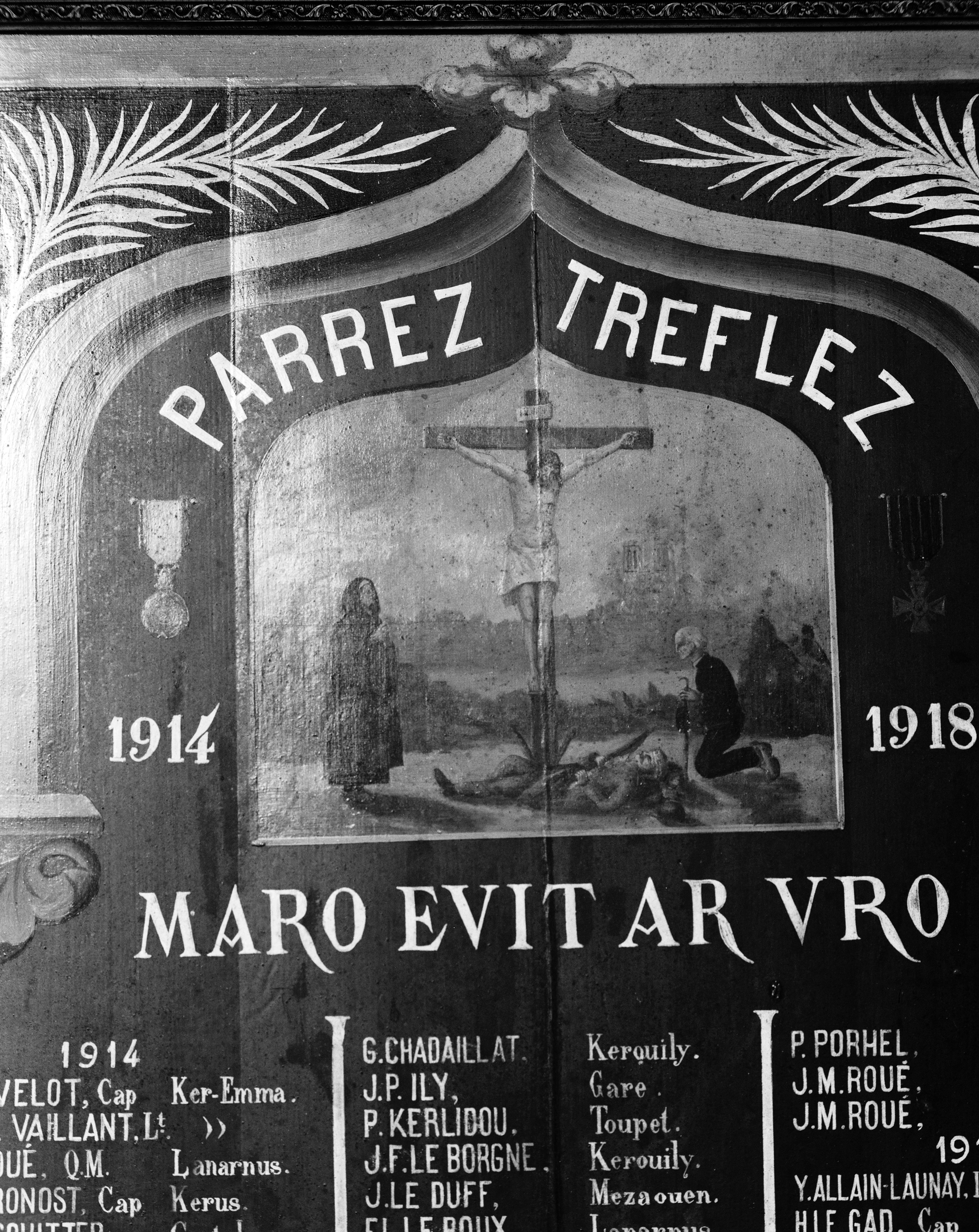 Tableau commémoratif des morts des morts de la guerre 1914-1918, église paroissiale Sainte-Édiltrude (Tréflez),