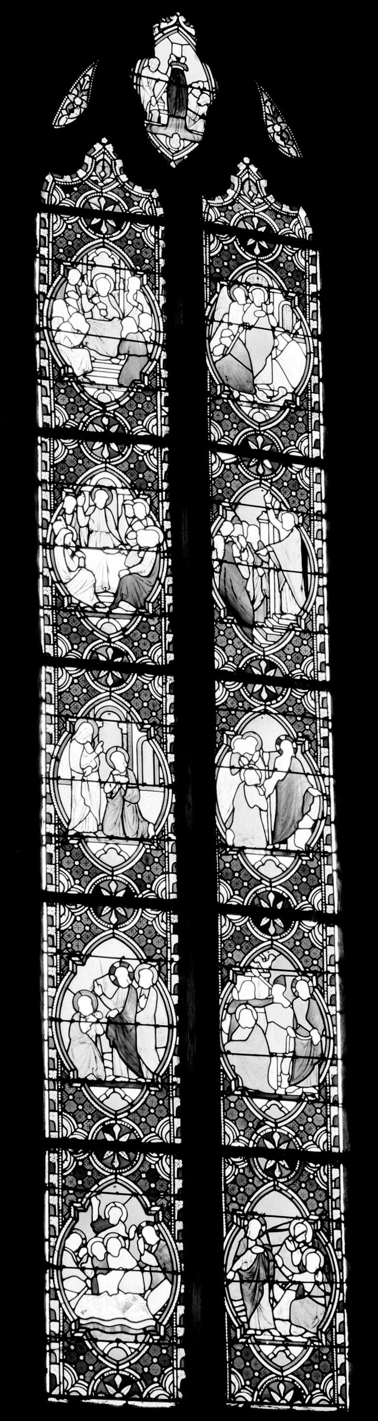 Verrière de la baie 1 : vie de saint Pierre (état en 1987)Immatriculation