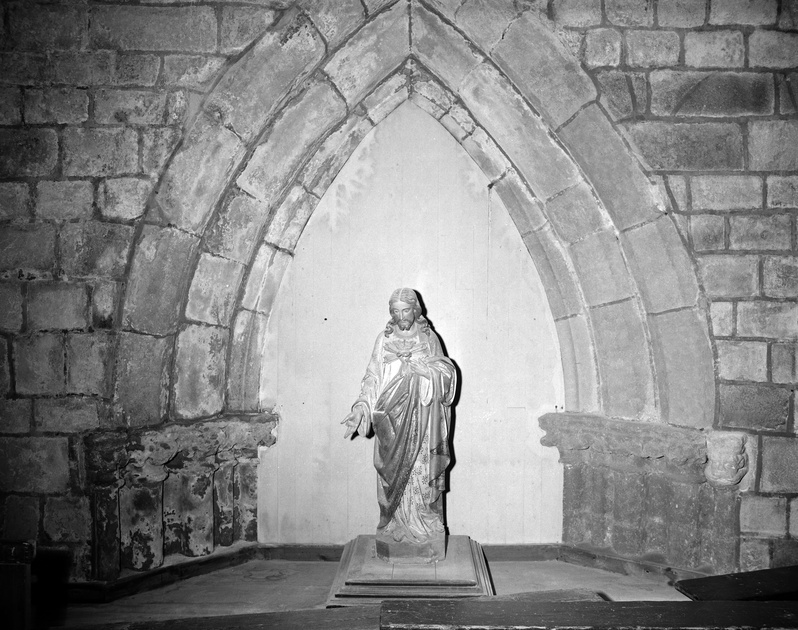 Église, clocher : partie supérieure obstruée de l'ancien portail occidental, vue depuis la nef (état en 1987)Immatriculation