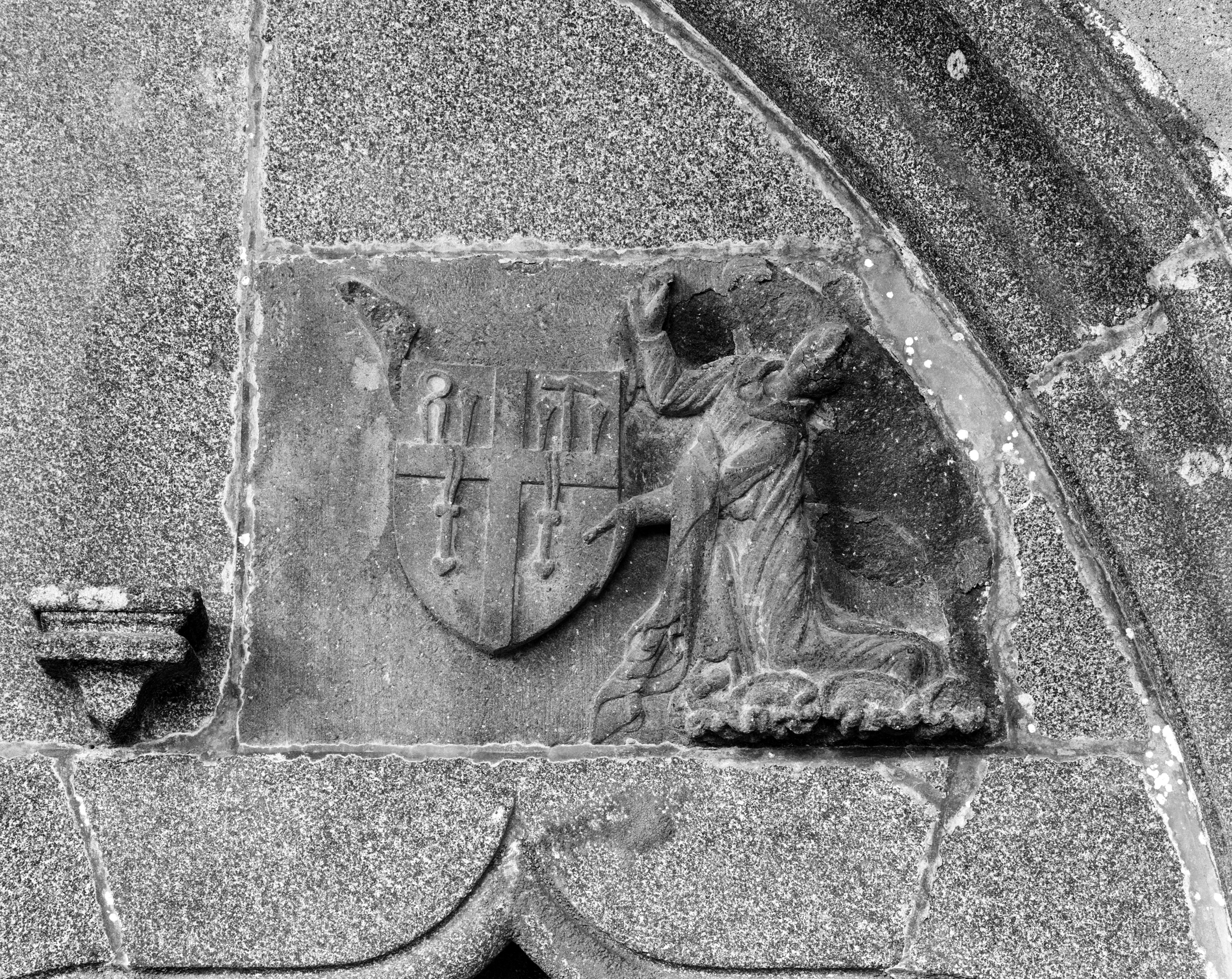 Portail, tympan : l'ange de droite porte les verges et les clous (état en 1987)Immatriculation