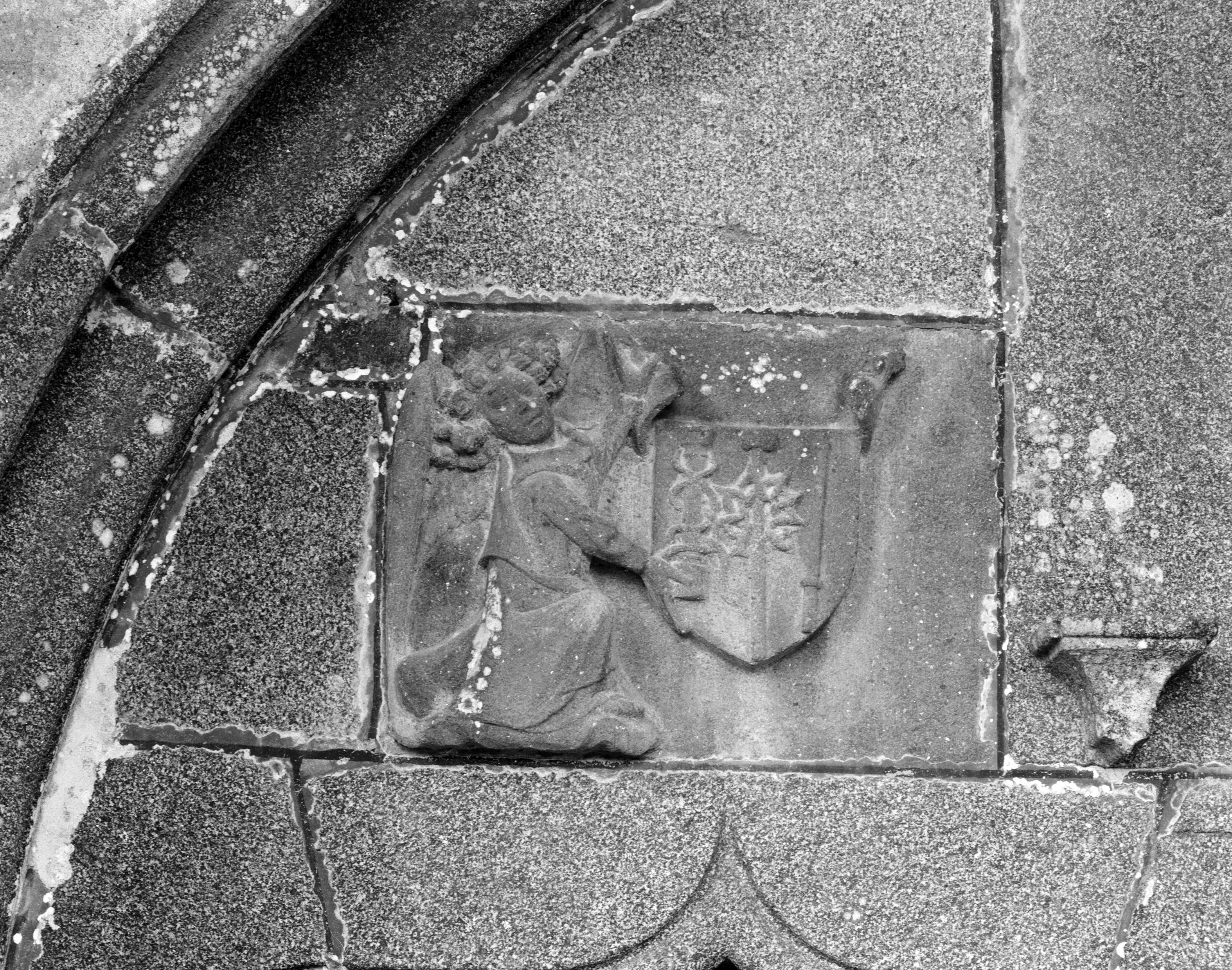 Portail, tympan : l'ange de gauche porte la colonne et la couronne d'épines (état en 1987)Immatriculation