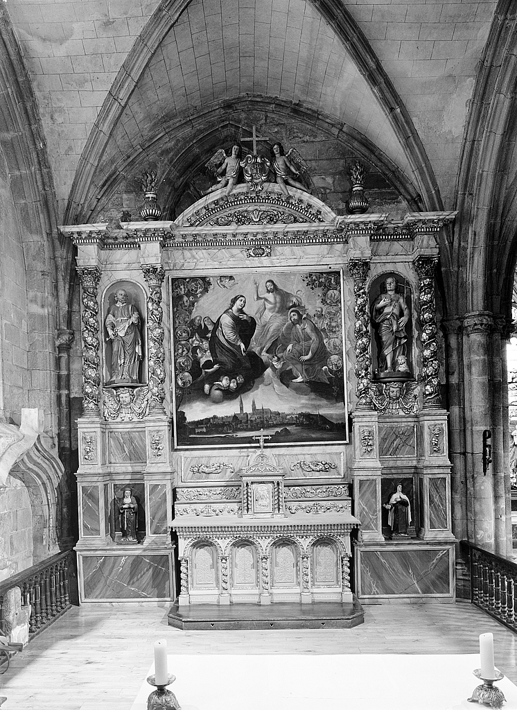 Autel, retable, tabernacle, gradins d'autel (2) (autel secondaire, autel tombeau, retable architecturé) : du Rosaire, cathédrale de Saint-Paul-Aurélien (Saint-Pol-de-Léon),