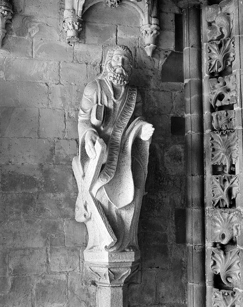 Porche sud, statue de saint André, vue générale.Immatriculation