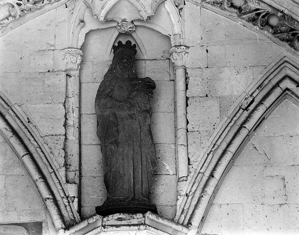 Porche sud, statue de la Verge à l'Enfant, vue générale.Immatriculation