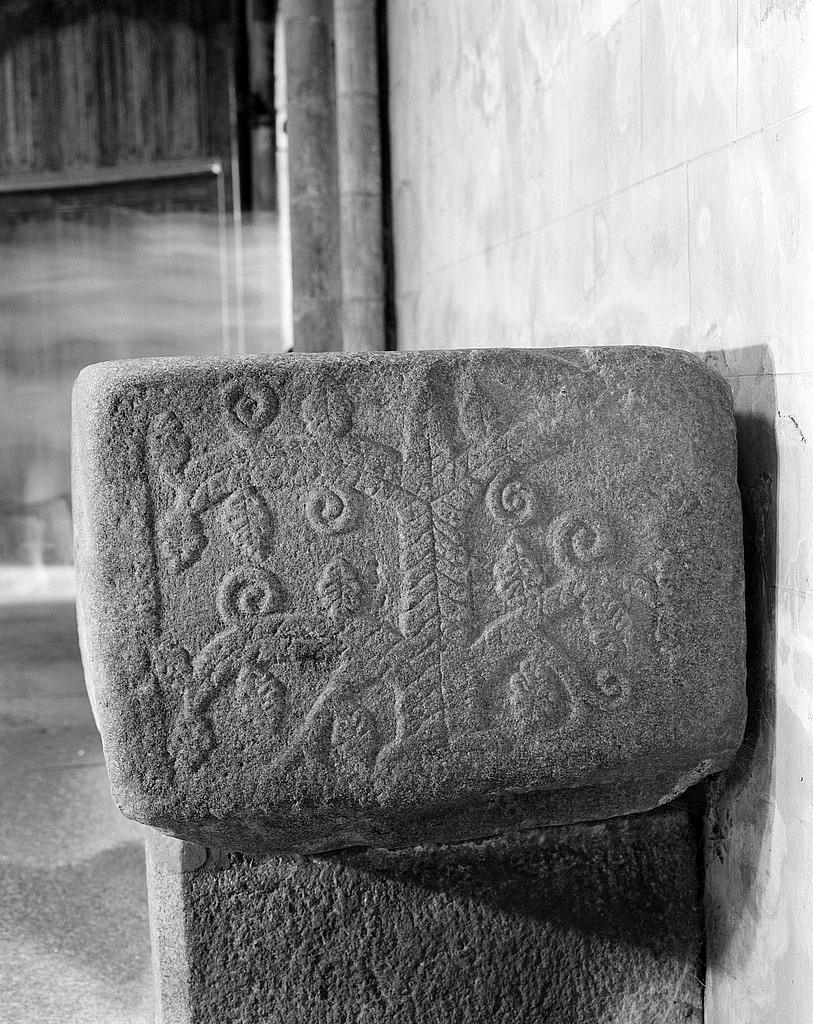 Détail du décor, côté droit, décor végétal.Immatriculation