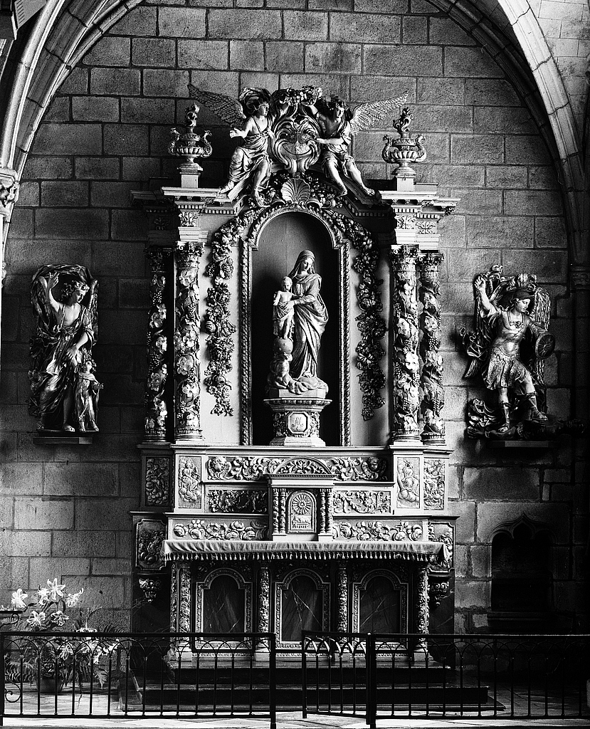 Autel, retable, tabernacle, statue, gradins d'autel (2) (autel secondaire, autel tombeau, retable architecturé) : de Notre-Dame du Mont Carmel, cathédrale de Saint-Paul-Aurélien (Saint-Pol-de-Léon),