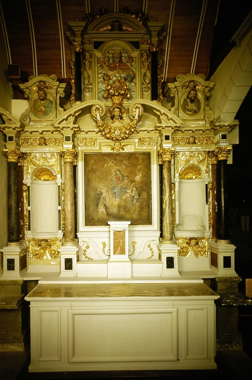 Autel, retable, groupes sculptés (2) (autel secondaire, retable architecturé à niche), église paroissiale Saint-Melaine (Cornillé),