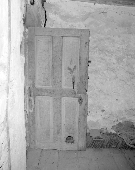 Premier étage, intérieur : détail du vantail fermant l'accès sur l'escalier.Immatriculation