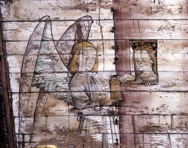 Peintures (8) : vie de sainte Catherine, anges, saint Pierre, saint Jean, chapelle Notre-Dame-de-Carmes (Neulliac),
