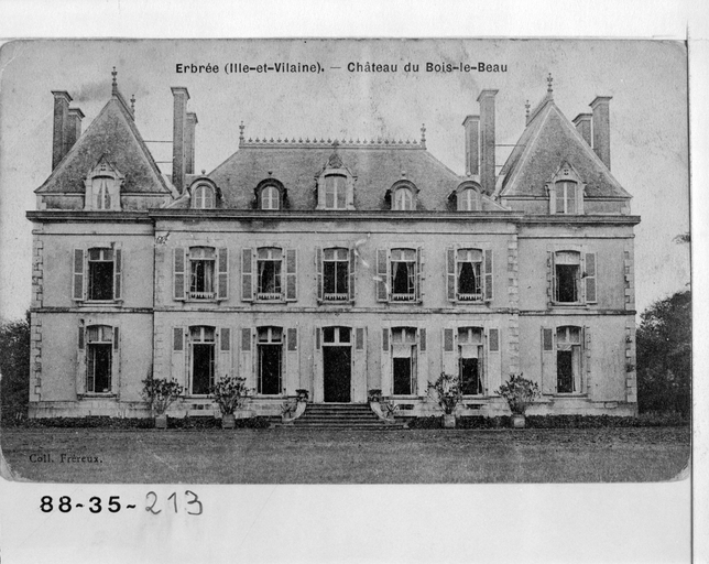 Erbrée (Ille-et-Vialine) - Château du Bois-le-Beau - Elévation principale. Carte postale ancienne. Fonds Lagrée.Immatriculation