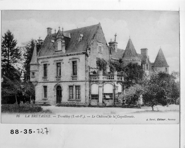 Château de la Coquillonais (carte postale, limite 19e - 20e siècles)Immatriculation