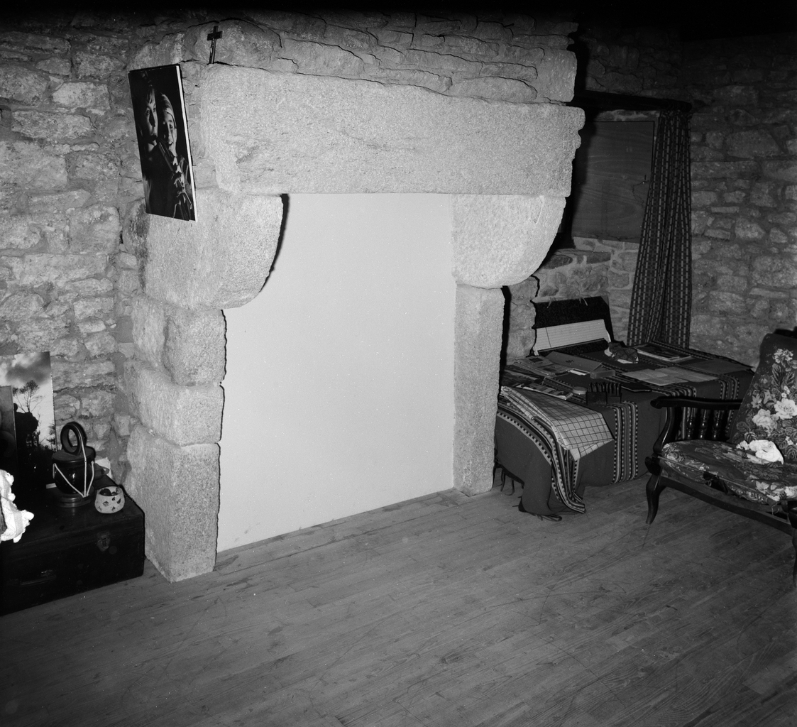 Maison de prêtre, logis, second étage : mur nord, cheminée.Immatriculation
