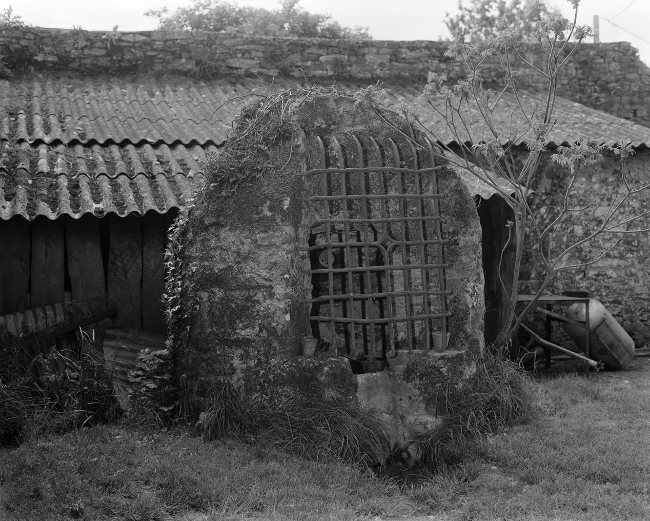 Manoir, puits avec grille provenant d'une baie.Immatriculation