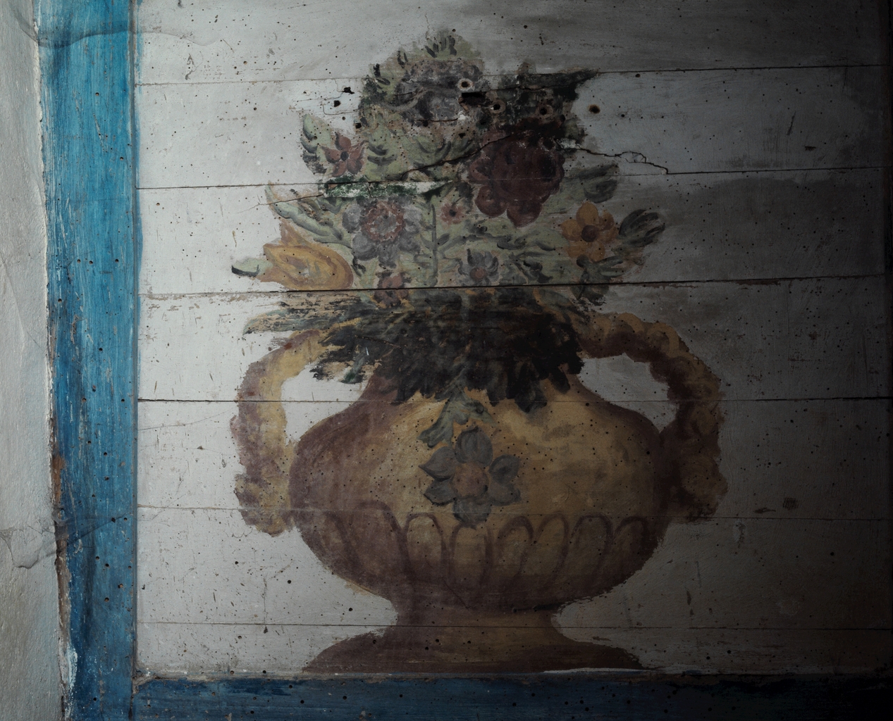Autel n°2, panneau peint, côté gauche : détail.Immatriculation