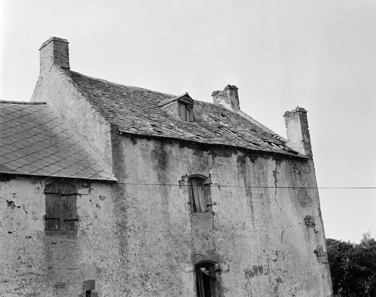 Corps daté 1808, partie ouest, élévation nord, toit et lucarne.Immatriculation