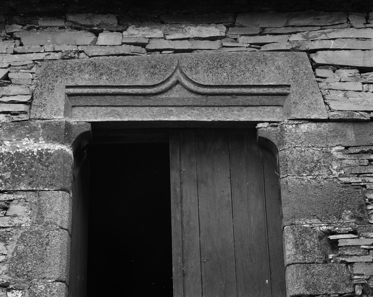Manoir, dépendances, élévation est : linteau mouluré de la fenêtre en remploi (état en 1988)Immatriculation