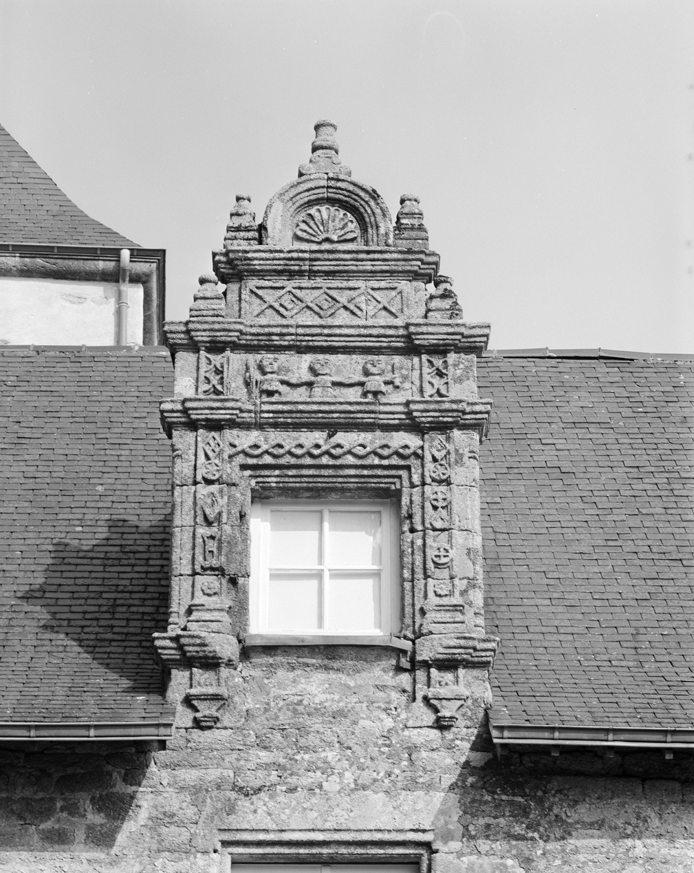 Manoir, élévation antérieure, lucarne nord.Immatriculation