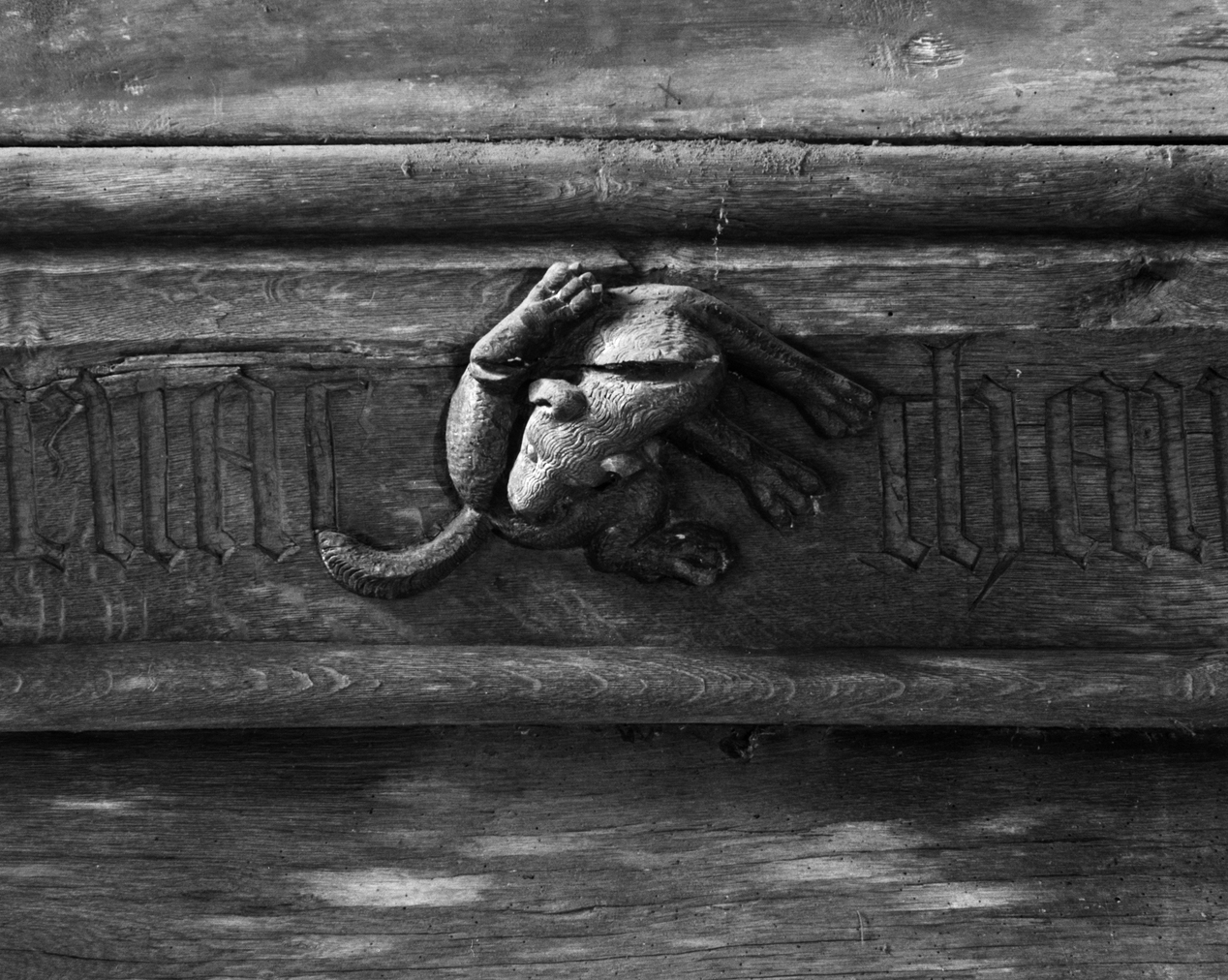 Sablière, nef, mur nord, sablière 25 : détails.Immatriculation