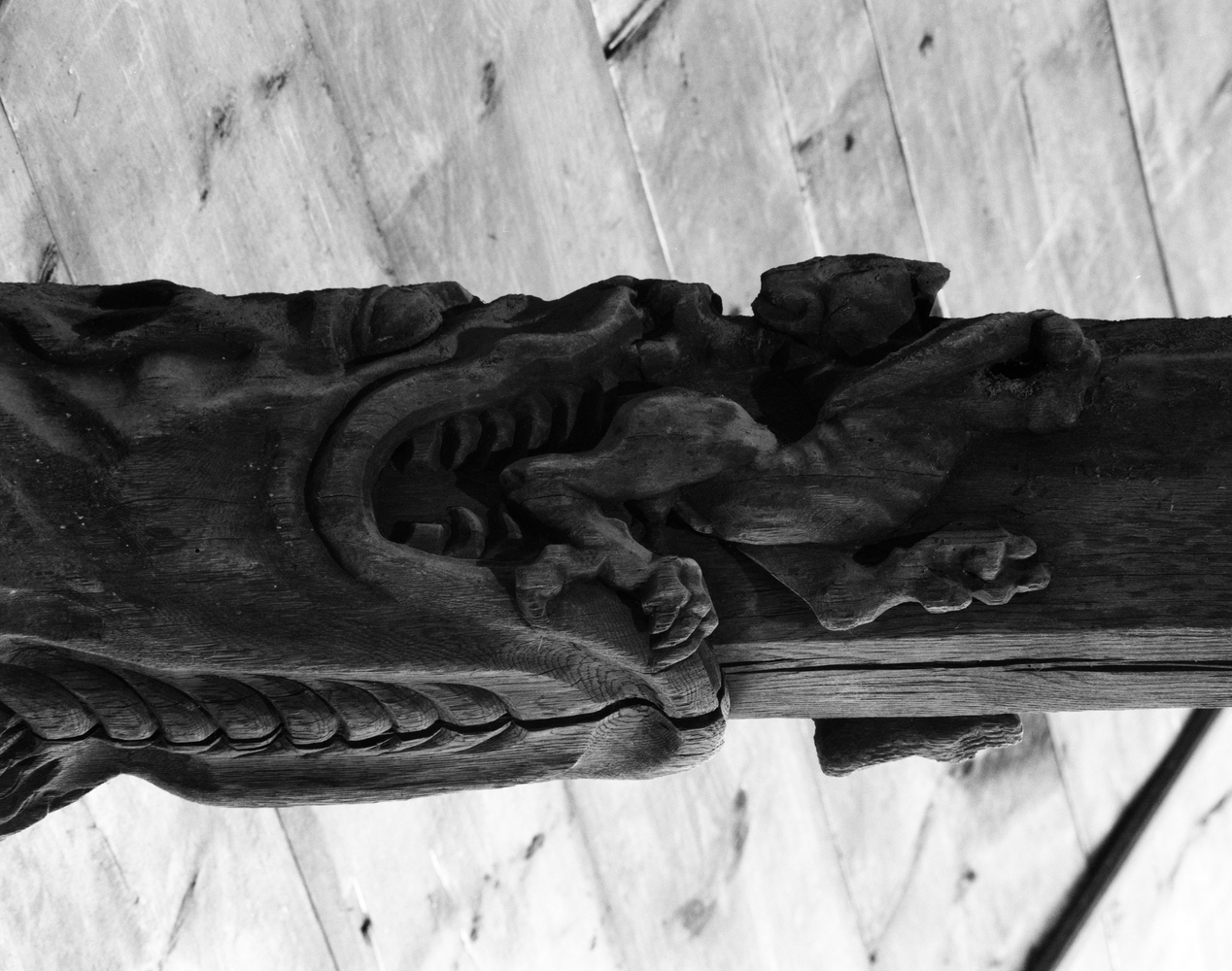 Sablière, nef, mur sud, engoulant, près de la sablière 24.Immatriculation