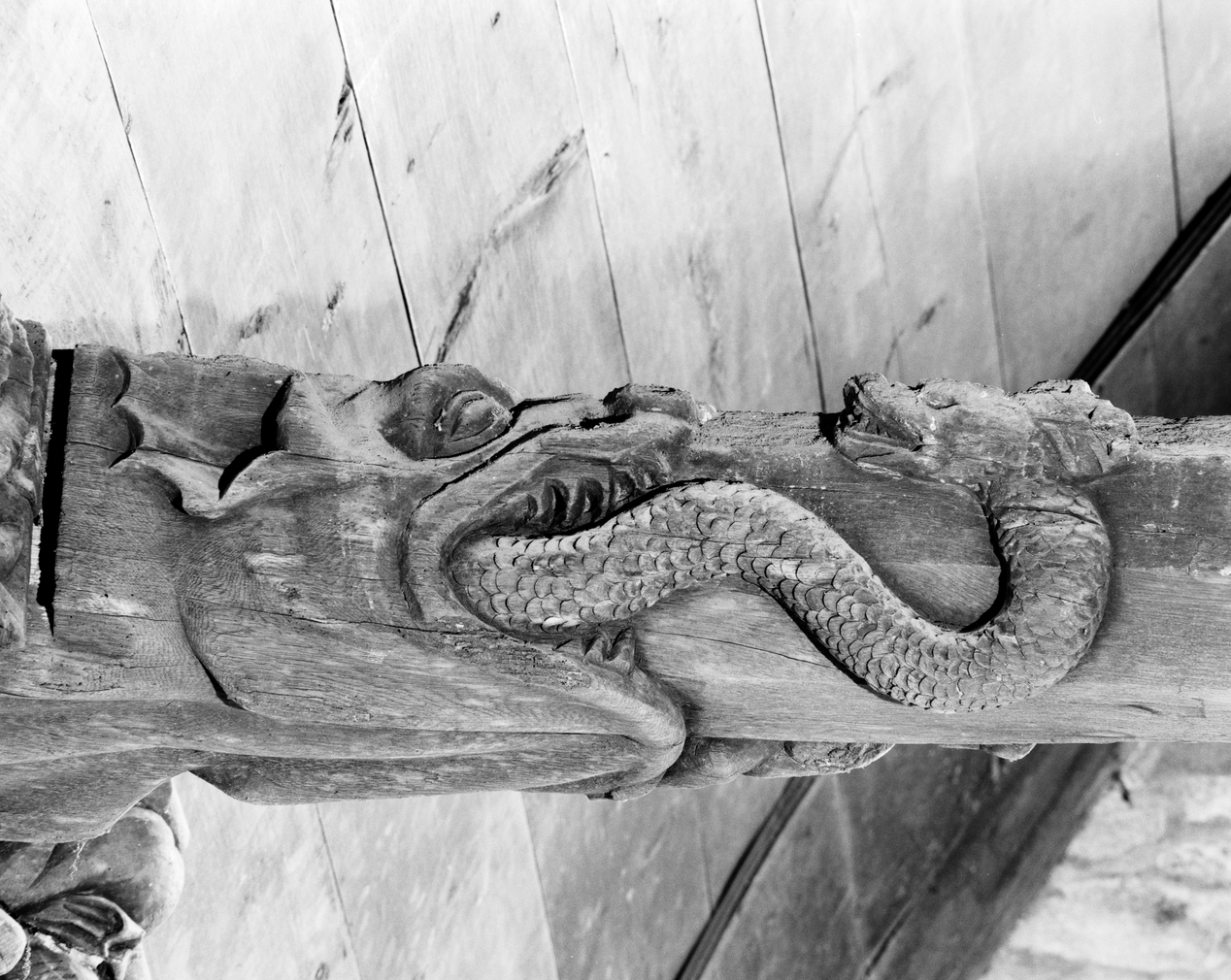 Sablière, nef, mur sud, engoulant, près de la sablière 26.Immatriculation