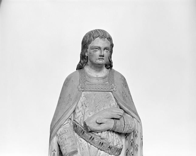 Statuette de saint Mélar placée dans la niche droite du devant d'autel : détail du busteImmatriculation