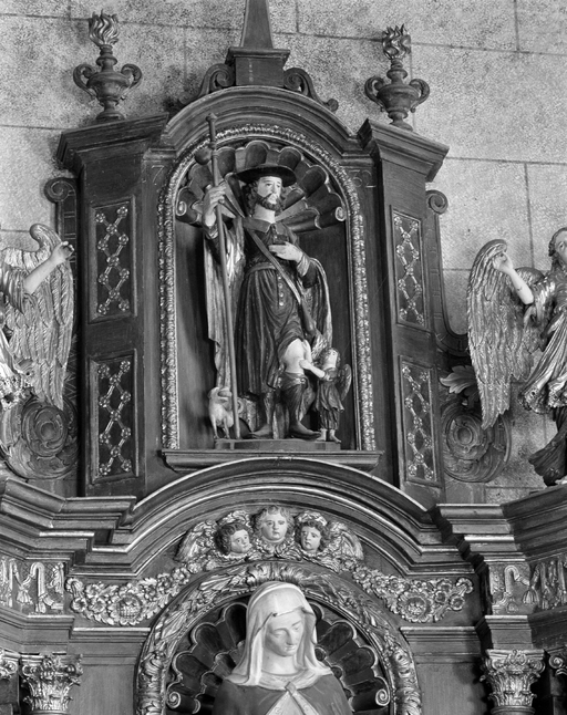 Autel retable du croisillon nord : niche de couronnement, statue de saint RochImmatriculation