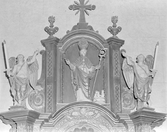 Autel retable du croisillon sud : niche de couronnement, statue de saint Nicolas et angelotsImmatriculation