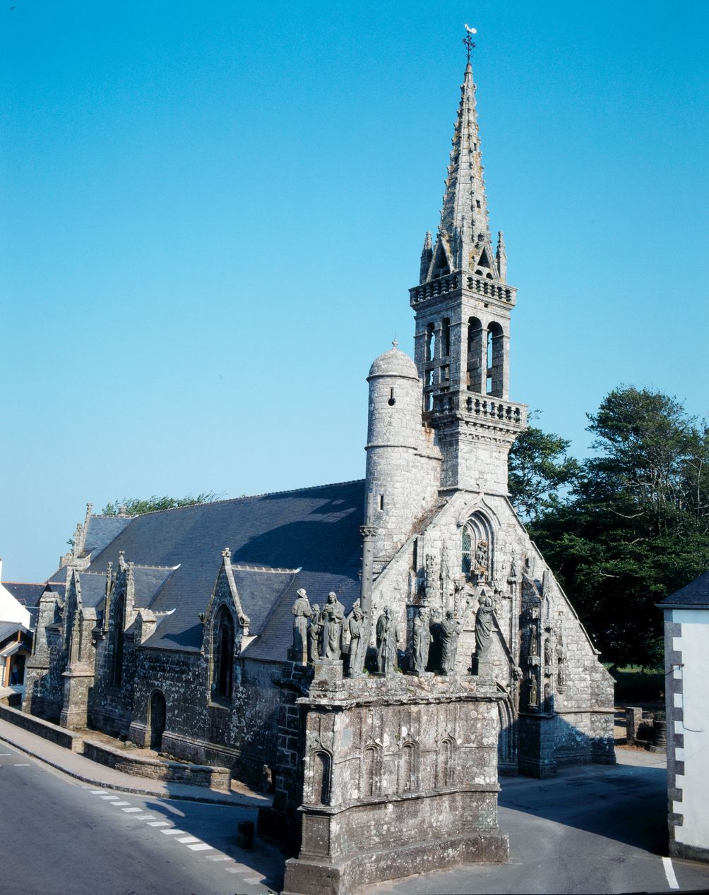 Vue générale prise de l'ouest avec calvaire. (1989)Immatriculation
