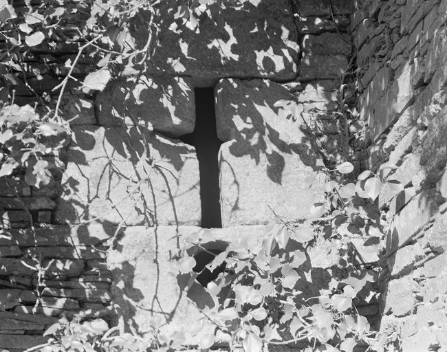 Manoir, mur de clôture, angle sud-ouest, tour carrée : bouche à feu (état en 1989)Immatriculation
