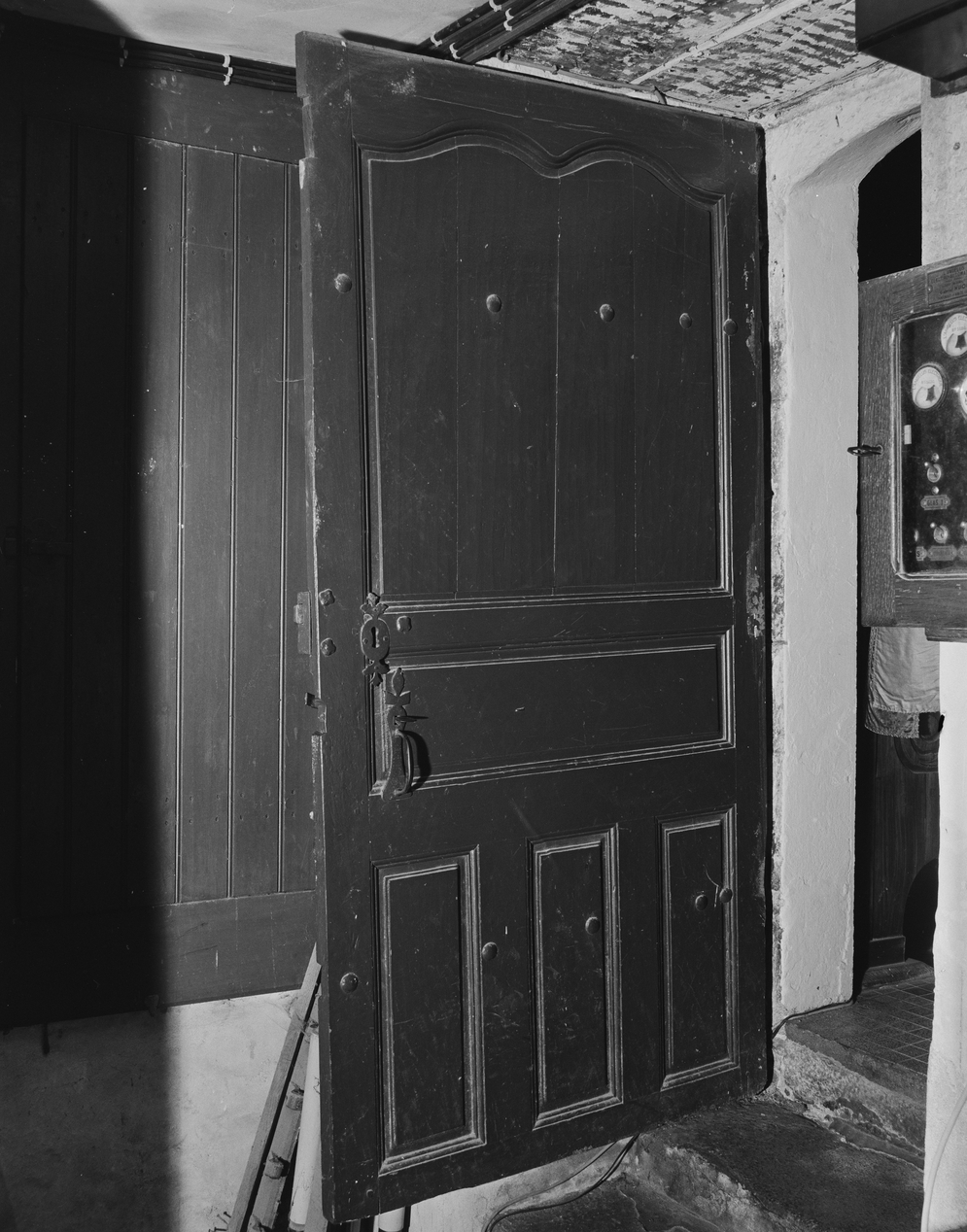 Sacristie, détail battant.Immatriculation