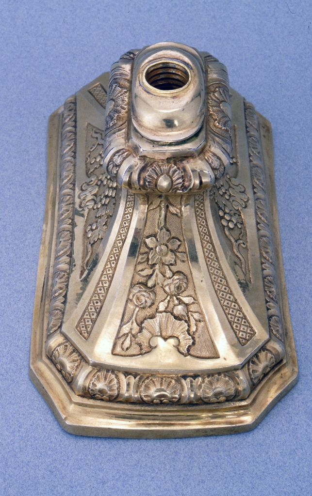 Détail du pied, motif latéral.Immatriculation