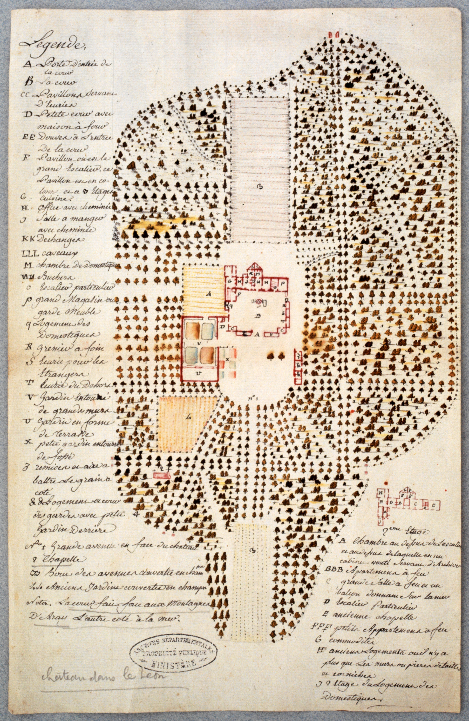 Château : plan du château et du parc. Dessin, 18e siècle (A. D. du Finistère, 8 Fi 4)Immatriculation