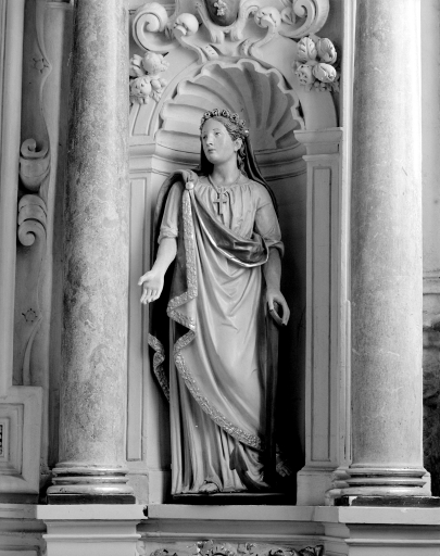Détail de la statue de Saint-Philomène à droite du retable Sud.Immatriculation