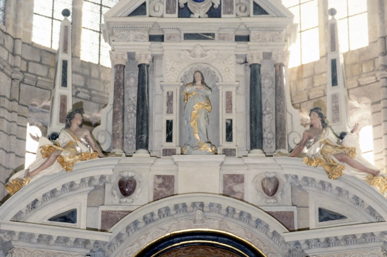 Maître-autel, détail des trois statues du sommet.Immatriculation