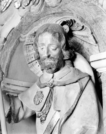 Vue générale de la statue de Saint-Roch, détail de la tête.Immatriculation