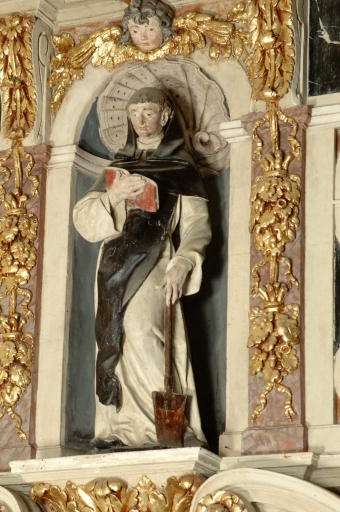 Vue générale de la statue de Saint-Fiacre (niche supérieure) retable Nord.Immatriculation